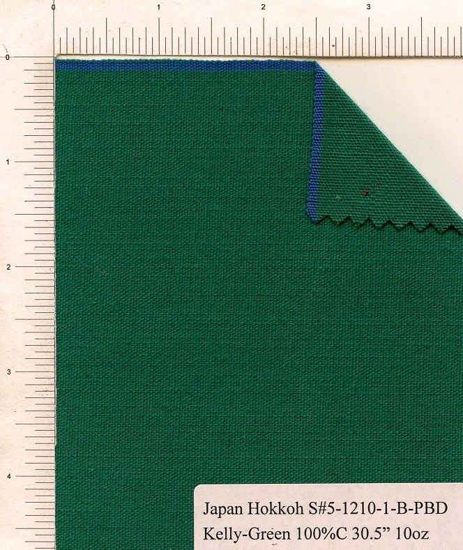 Hokkoh Mills Japan, Blueline Kelly-Green Selvedge Canvas